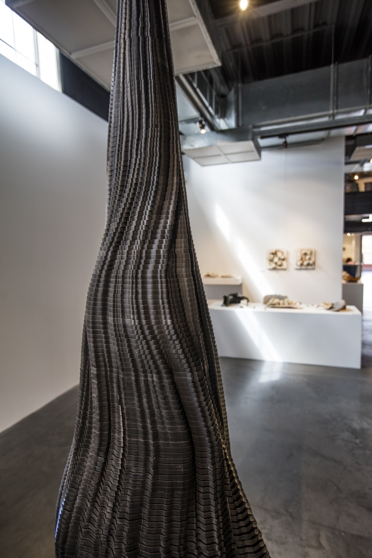 In Emotional Leak , they produced the physical manifestation of a slowly leaking roof. Inspired by water and realized in glass, the resulting form is a black monolithic sculpture, resembling a digital gothic architectural model.