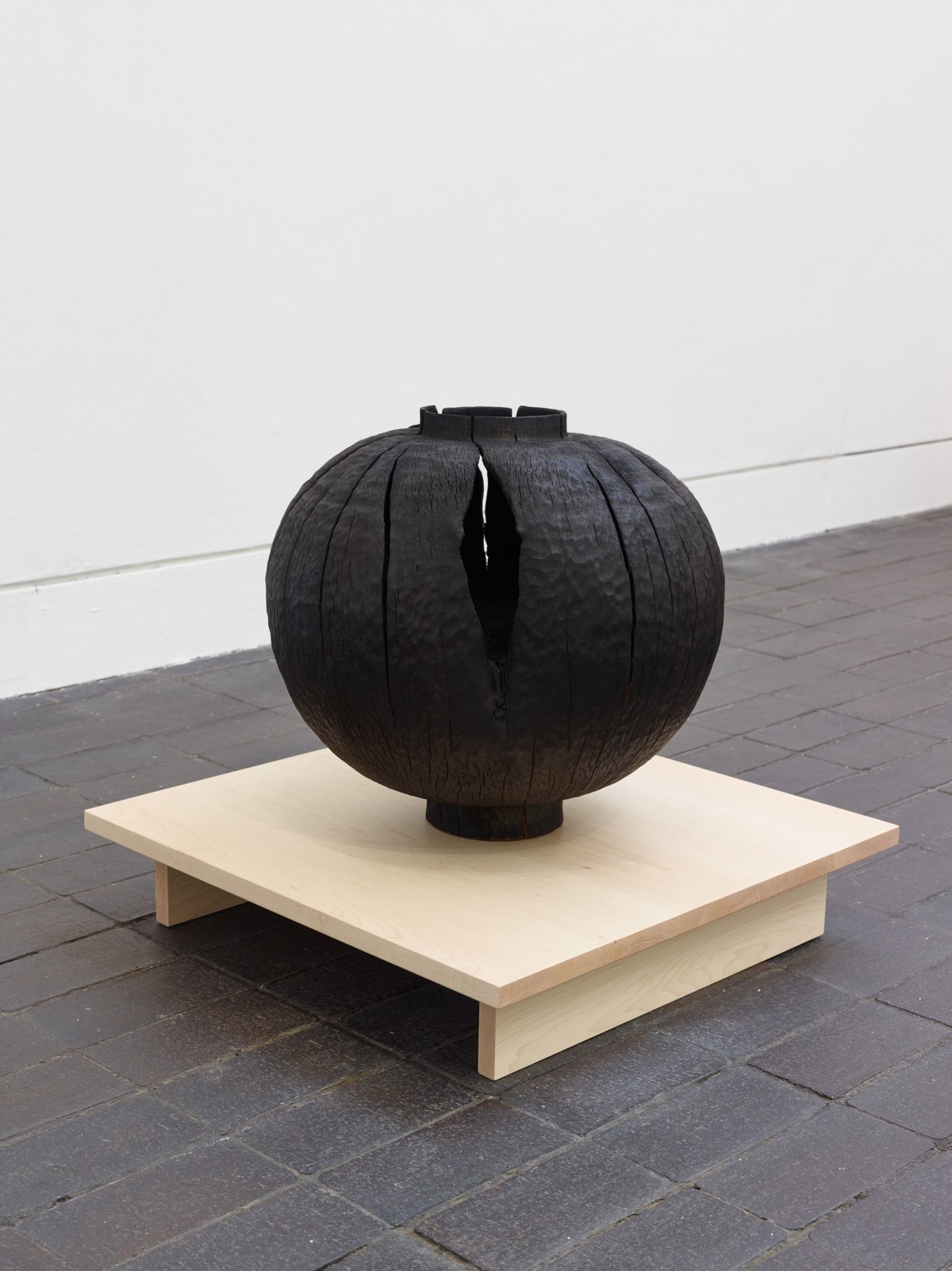Image: Forest + Found, Kindled Land Jar, 2019. Burnt beech, pine tar (cedar of Lebanon), linseed oil on maple plinth | Photo: Anna Arca