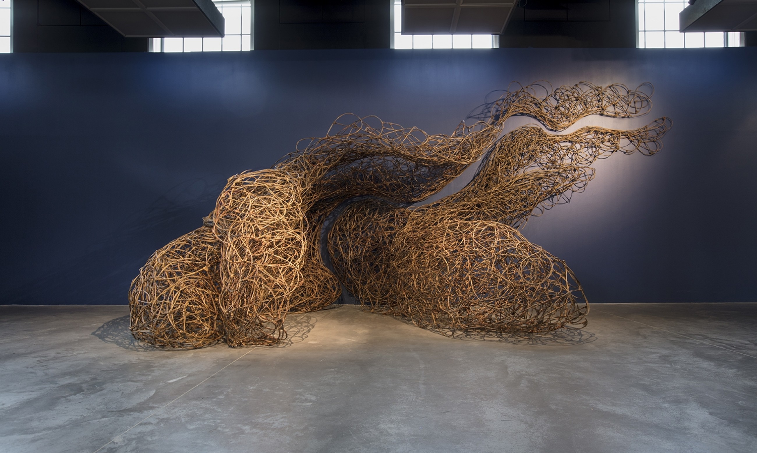 Rooted in Instinct was a unique exhibition demonstrating an evolution of the intuitive making process that has dominated Bacon’s practice up to that point. It was a pivotal moment in the artist’s career featuring unexpected and familiar forms in willow and new explorations in thatch, further developing the possibilities of traditional hand weaving and knotting techniques. In response to NCCD’s history as an old seed warehouse, the new abstract sculptures created height, density and detail, the forms are all at once majestic, immersive and ‘protective’ with a unique sense of connectivity to the heritage crafts and architecture of the Lincolnshire landscape.