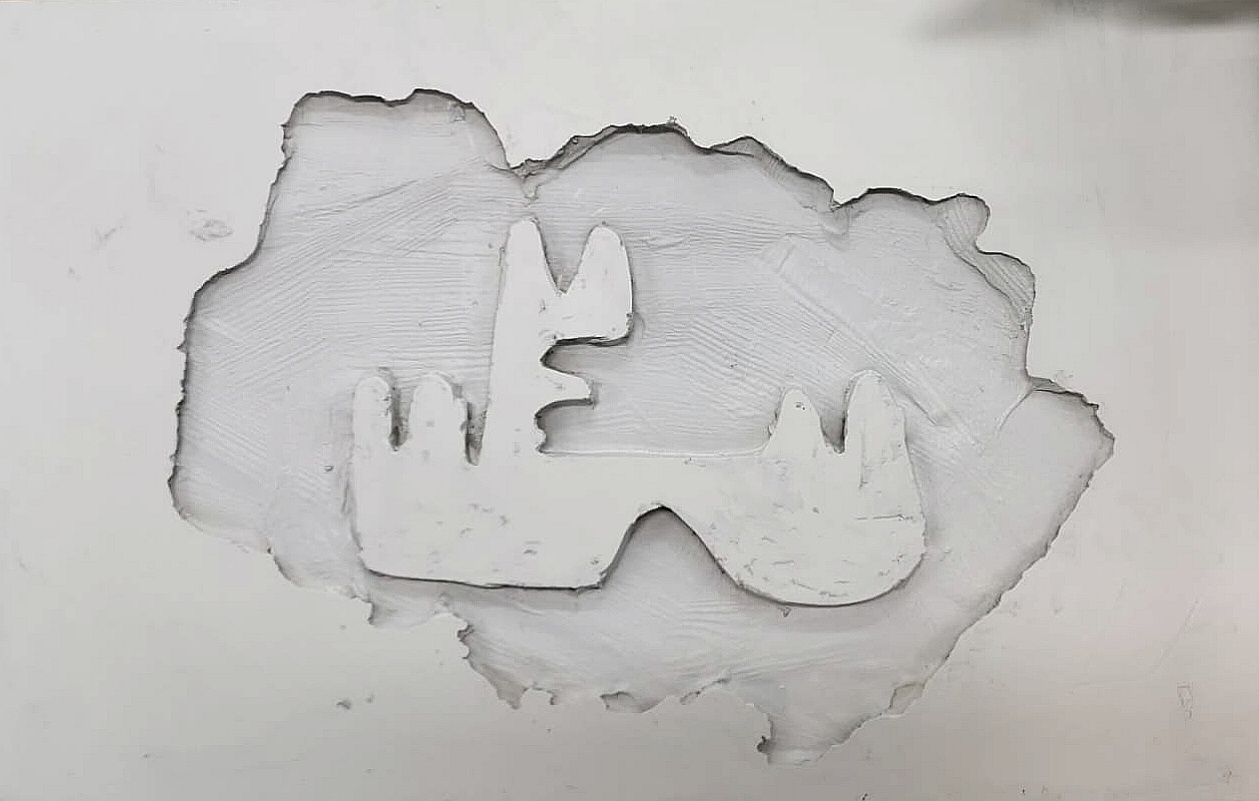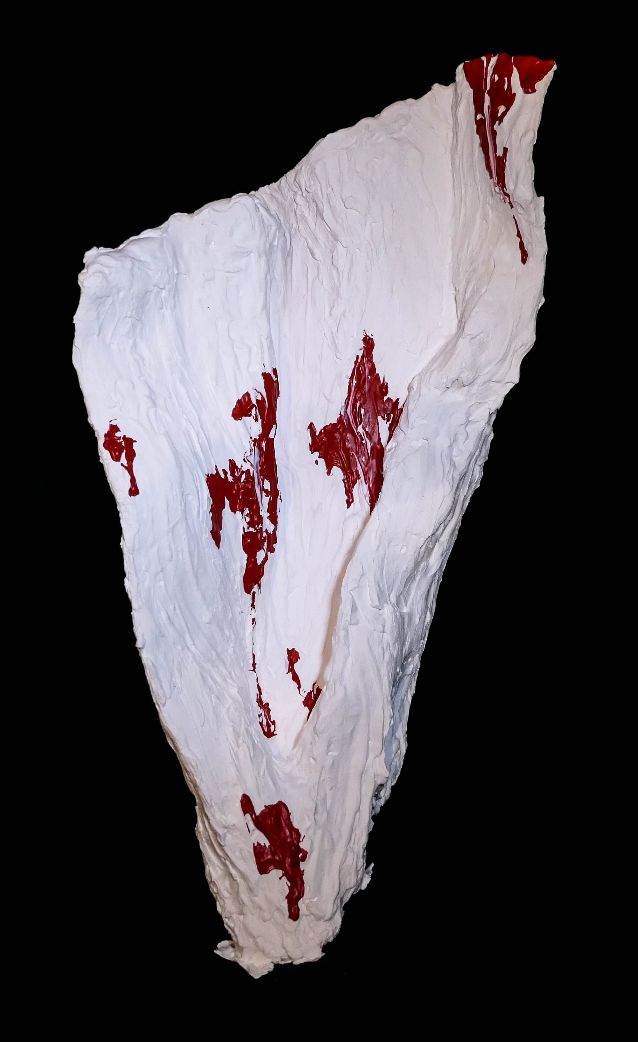 Material flow dominated the chances as the plaster of Paris was allowed to flow and find its own shape, stages of painting were similarly poured and allowed to flow.
