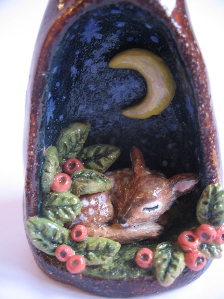 This ceramic piece was created to capture my sense of wonder at my experience of nature and it’s ability to transform my inner experience. This has been especially true during Covid lockdowns when I have been on long walks under the stars and trees and I have felt wonder at it’s beauty and also wonder at the part of me that is not a part of the modern world, that is ancient and still animal.