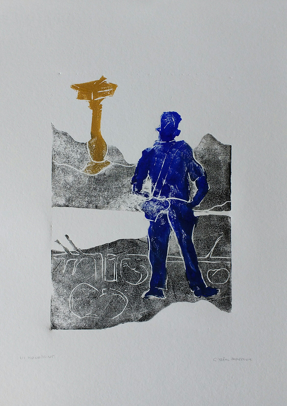 The figure wades through the unknown, to a yet unrealised destination, perhaps the figure is a self-portrait of what I would like to become.