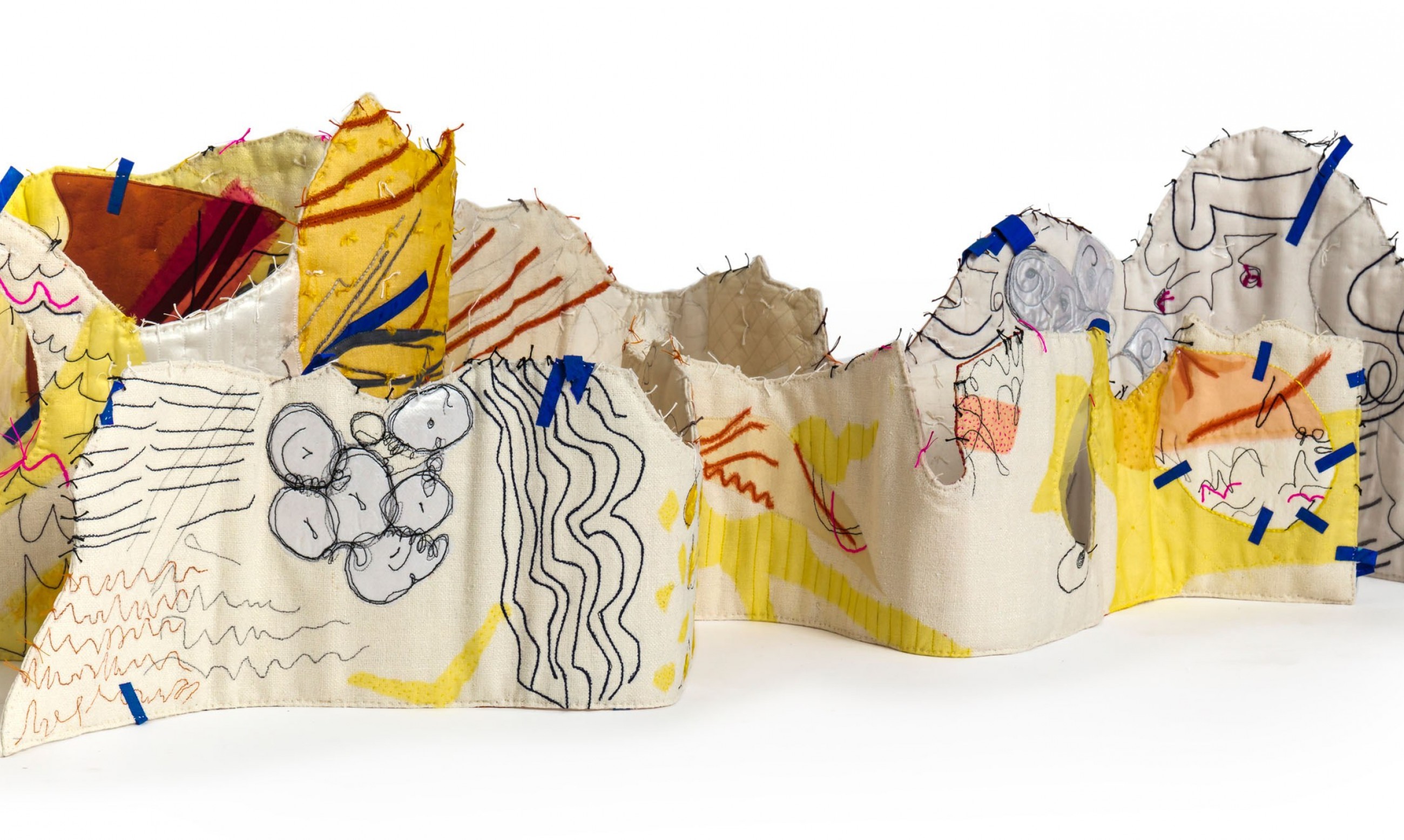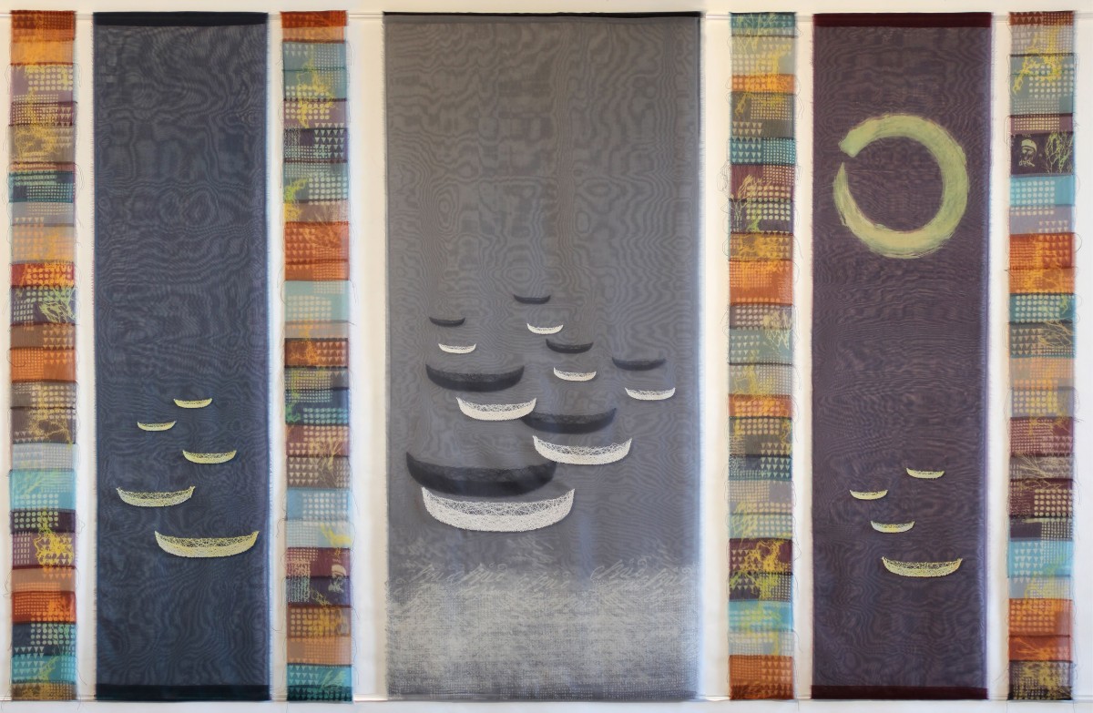 The exhibition is inspired by the life and textile art of founder member and influential quilt artist, Mary Fogg. Mary was known for her painterly approach and her experiments with recycled fabrics long before this was fashionable. She called her work ‘a celebration of cloth in all the wonderful variety available to us: colour, pattern, texture, flexibility and the way it reflects light.’ Each member of the Quilt Art group has taken a unique approach to her legacy to create exciting, cutting-edge work which aims to transcend people’s ideas of what quilting can do.