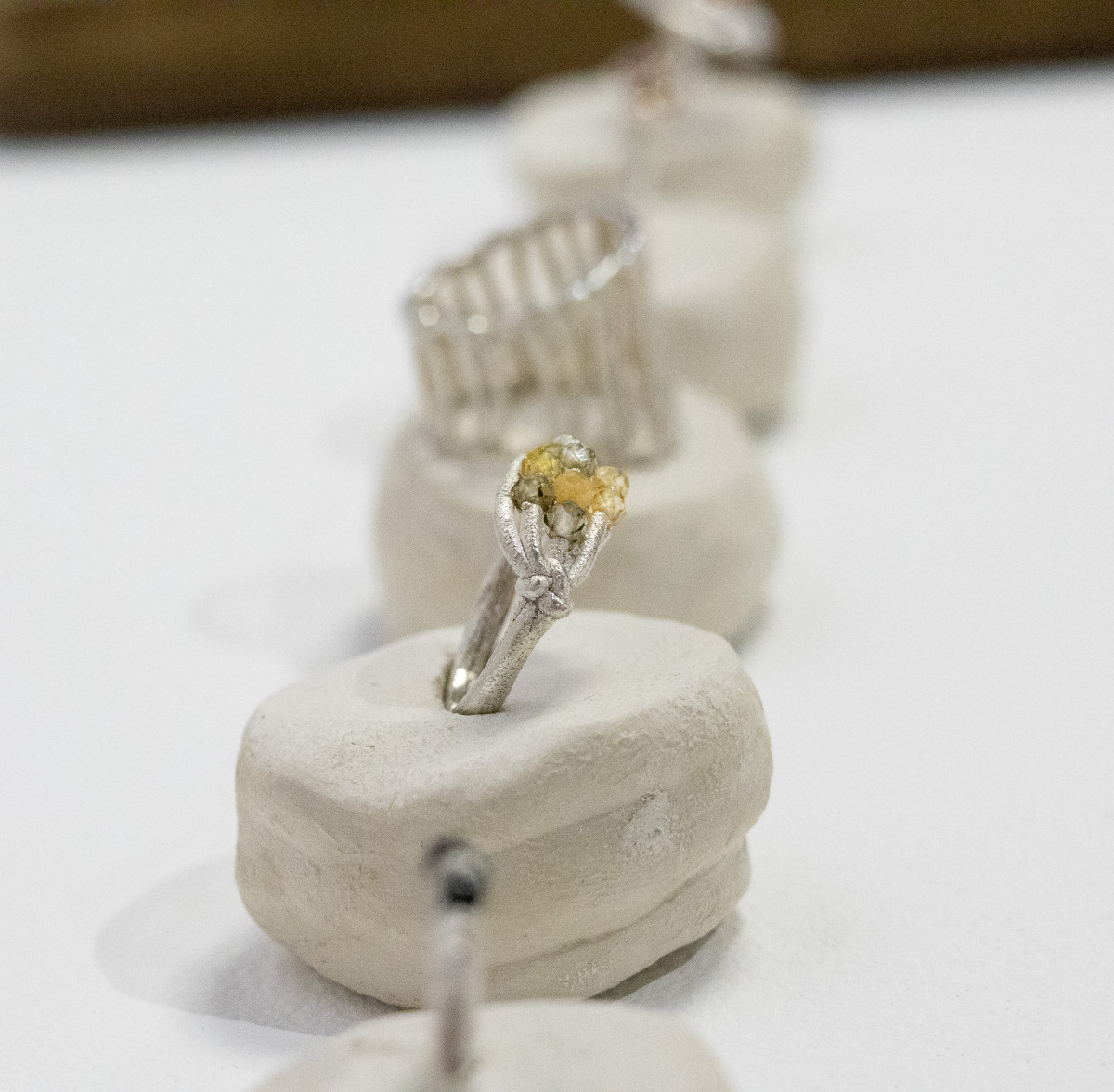 Caroline is an interdisciplinary artist, jeweller, and material researcher. With MA degrees in Jewellery & Metal and Art & Material Histories, Caroline responds to matters of human and environmental concern through a triage of object, image and text. The series ‘At Our Feet’ repurposes components of an original surveyor’s Gunter’s Chain. Designed in 1620, the 100 chained links equal 66 ft in length and were used to measure land across the British Empire and early American settlements.