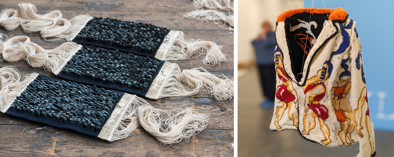 Jane Walkley’s piece may look like ceramic but they are made using traditional tapestry techniques and hand-cast jesmonite resin. Jane creates sculptural and tactile pieces that maintain a physical and visual connection to the sites and people she is researching. Her work invites viewers to delve into their own memories and attachments, through evocative and informative means.